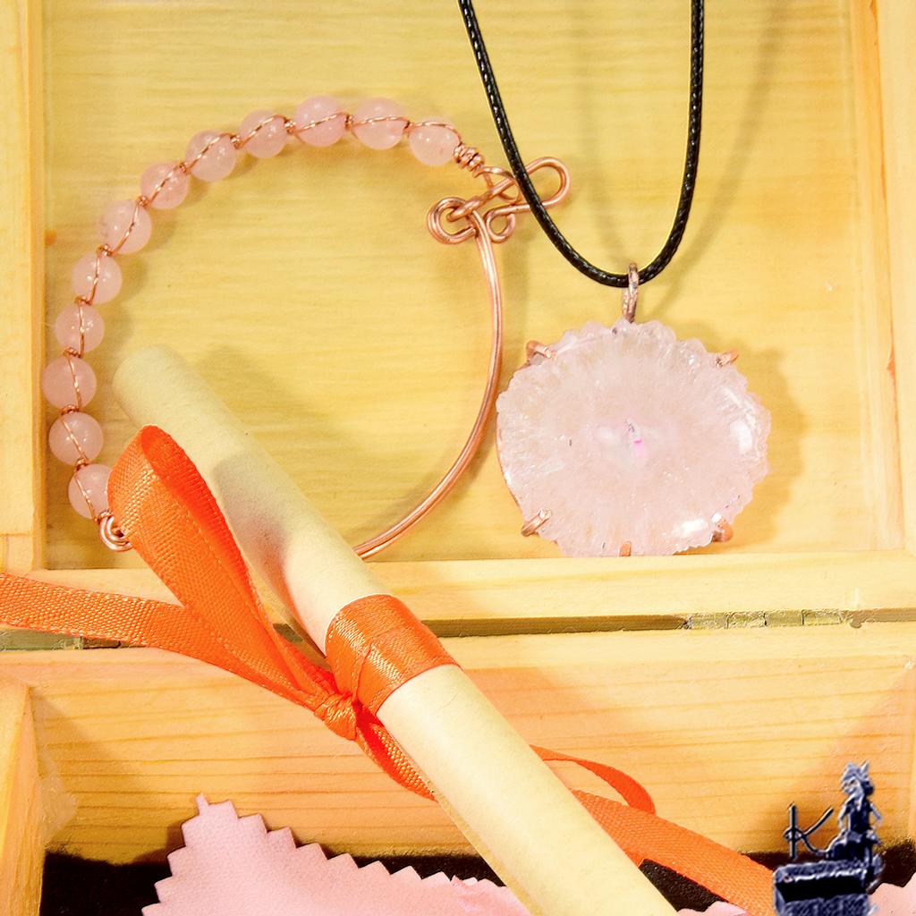 Le Quartz Rose est le symbole universel de l’amour inconditionnel et de la bienveillance sans jugement. En lithothérapie, il est une source de consolation profonde, aidant à trouver en soi la sécurité et la paix nécessaires. Il favorise l’empathie et le pardon, dissolvant la méfiance, la haine ou le ressentiment au profit d’une atmosphère de respect mutuel. Associé au Solar Quartz, cette parure devient un véritable catalyseur de positivité.