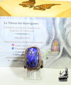 Laissez la magie du Trésor des Korriganes enlacer votre doigt d’un voile de mystère pourpre. Telle une amulette oubliée par les anciens esprits de la forêt, cette bague est une invitation à franchir le seuil du rêve. Nichée dans son écrin de bois ciré, la charoïte semble avoir capturé les reflets d’un crépuscule enchanté sous la canopée. C’est un bijou talisman conçu pour celles qui cherchent à allier l’élégance de l’artisanat d’art à la puissance des énergies terrestres.