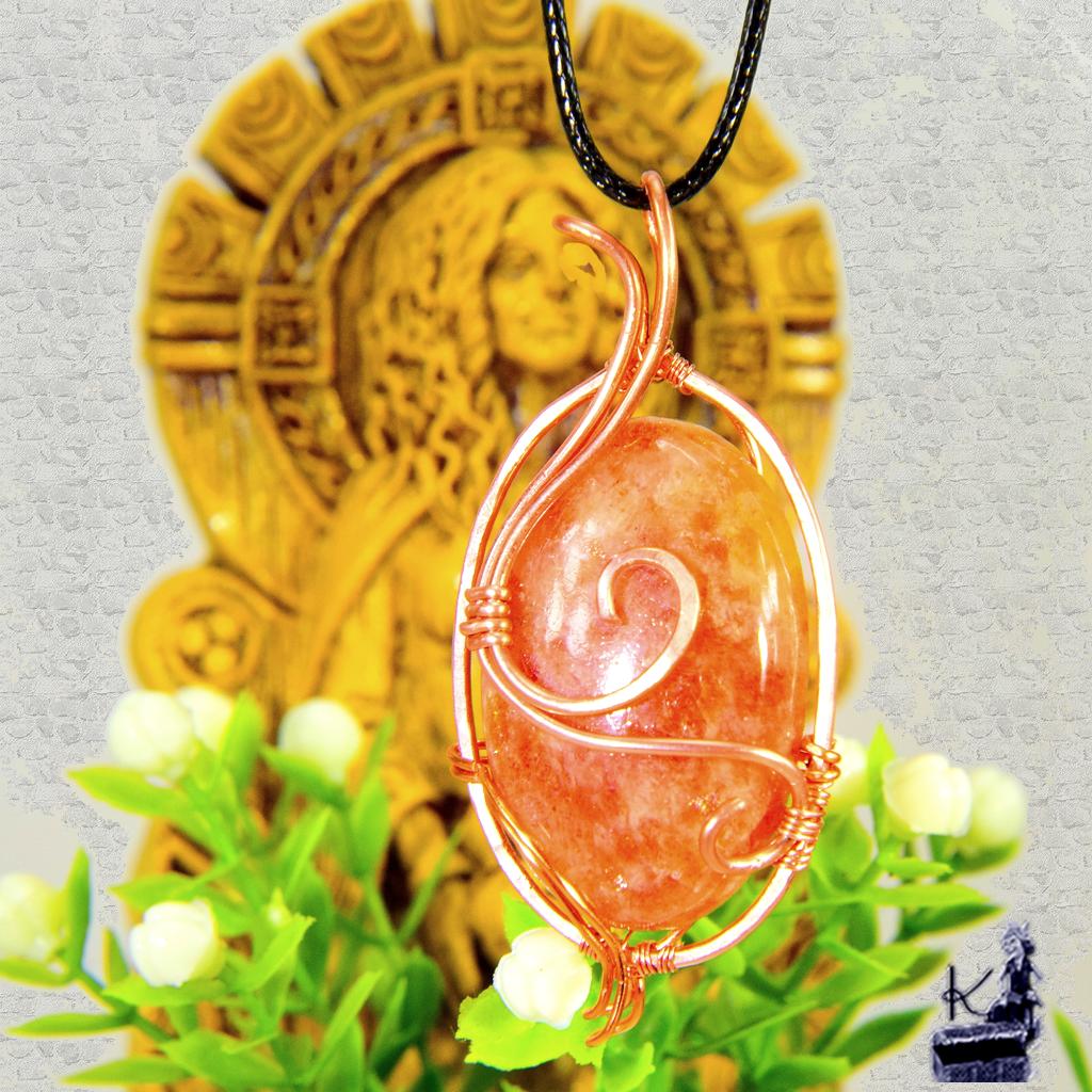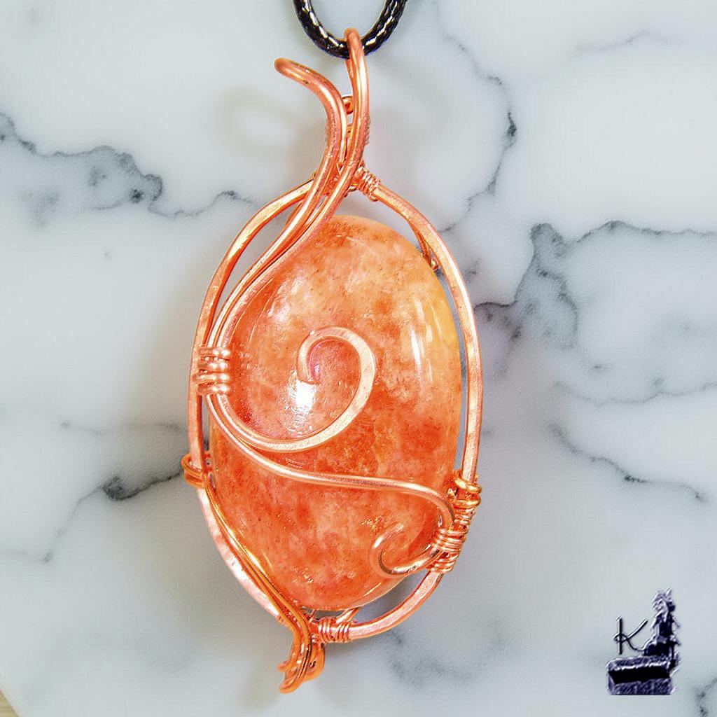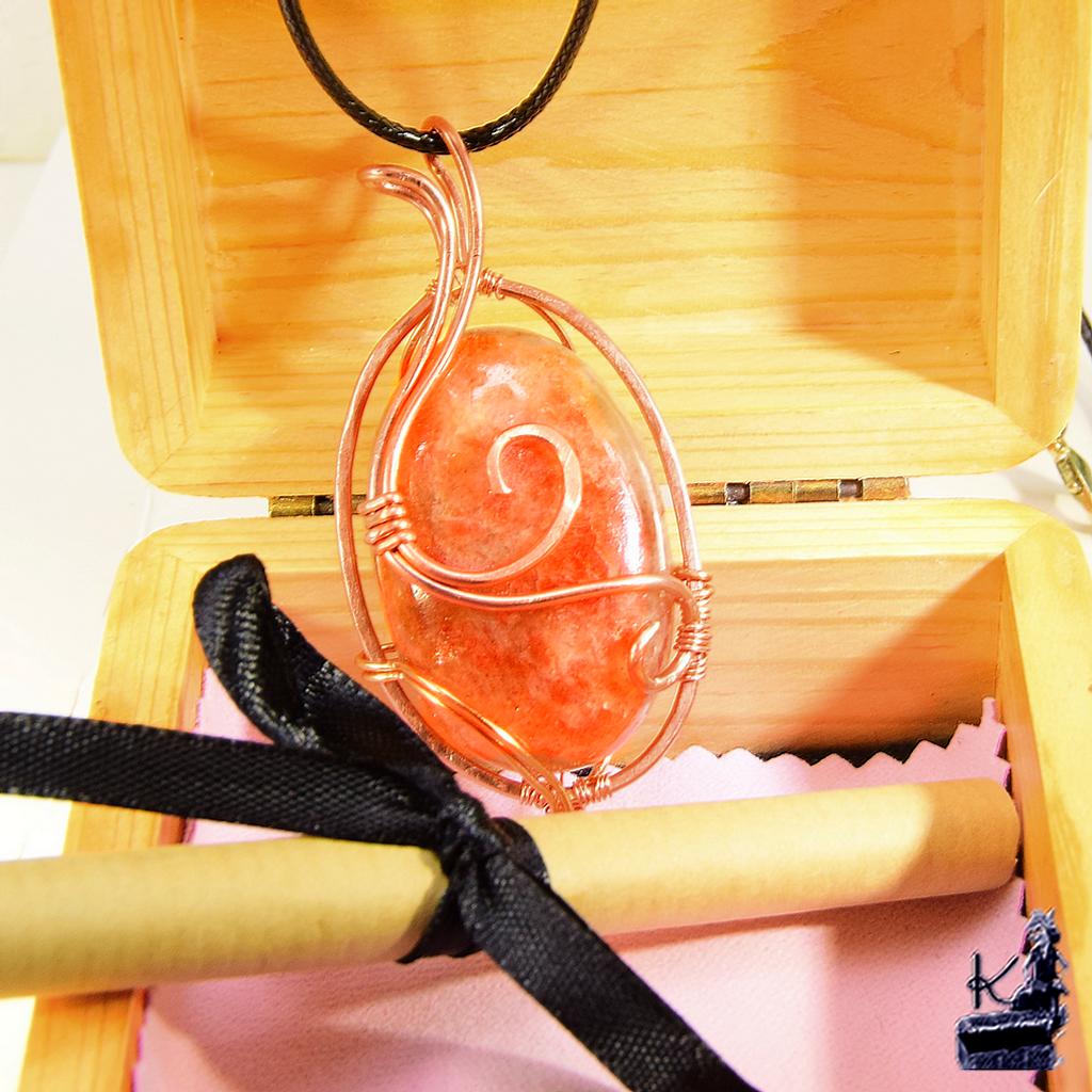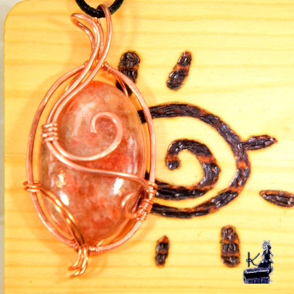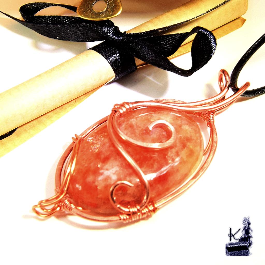 - Le Bijou : Pendentif réalisé selon la technique du wire wrapping (cuivre naturel tissé à la main).