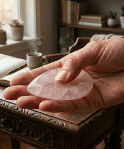 Le mouvement : Effectuez des mouvements circulaires ou des va-et-vient avec la pulpe du pouce. La douceur du quartz rose, d’abord frais, se réchauffera peu à peu pour fusionner avec votre propre chaleur.