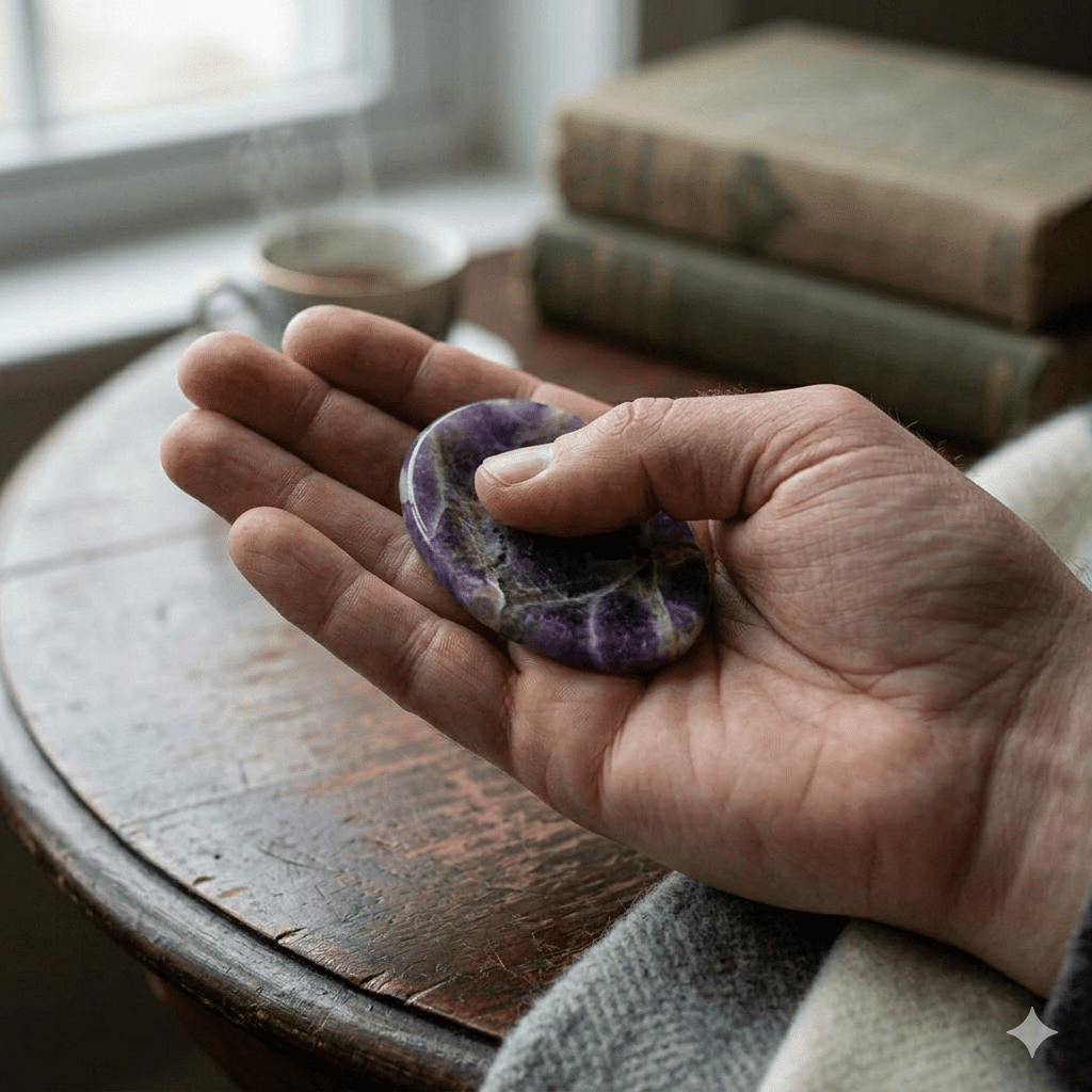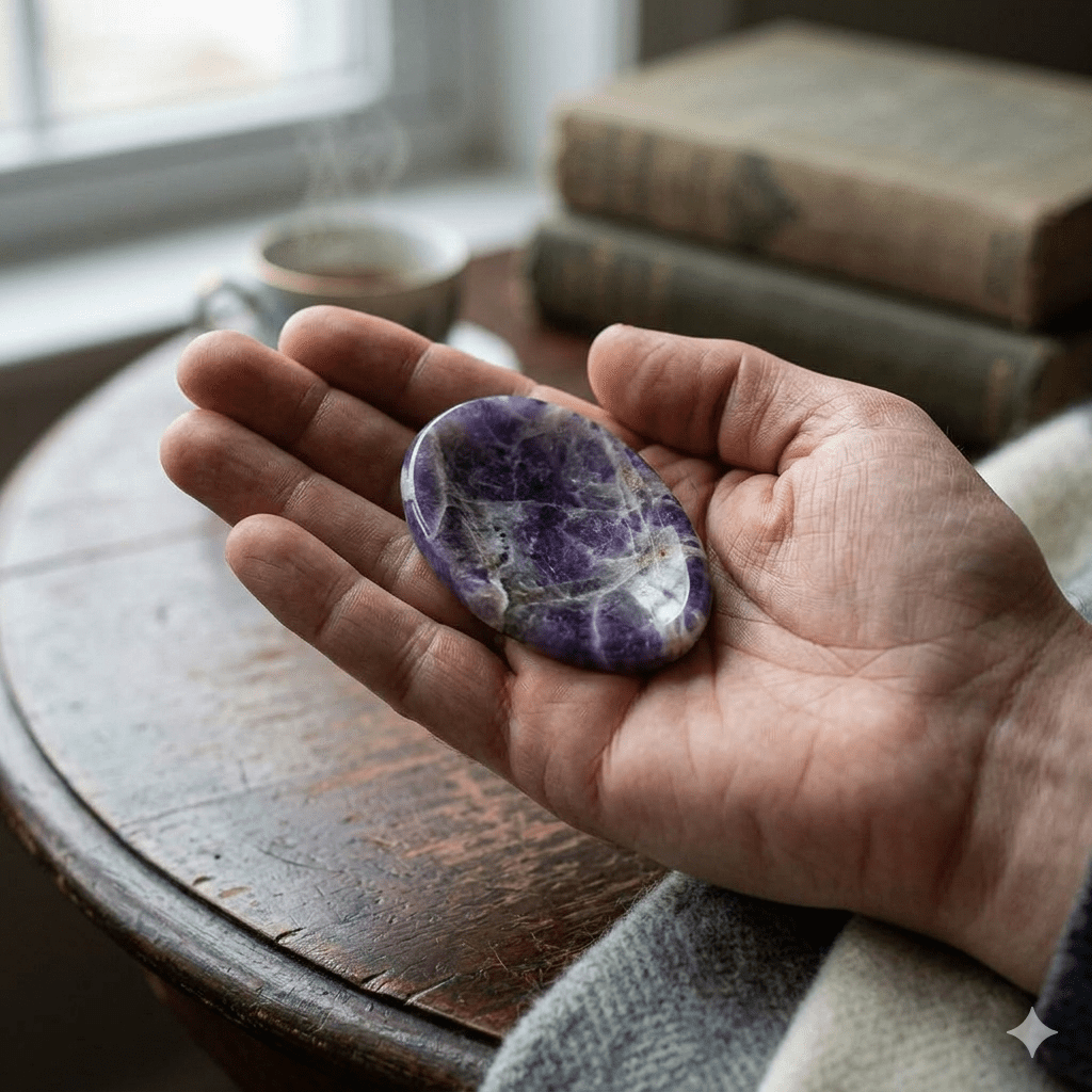 En lithothérapie, l’Améthyste est la pierre par excellence de la tempérance et de la clarté mentale. Sa vibration violette agit comme un baume sur les pensées bouillonnantes :